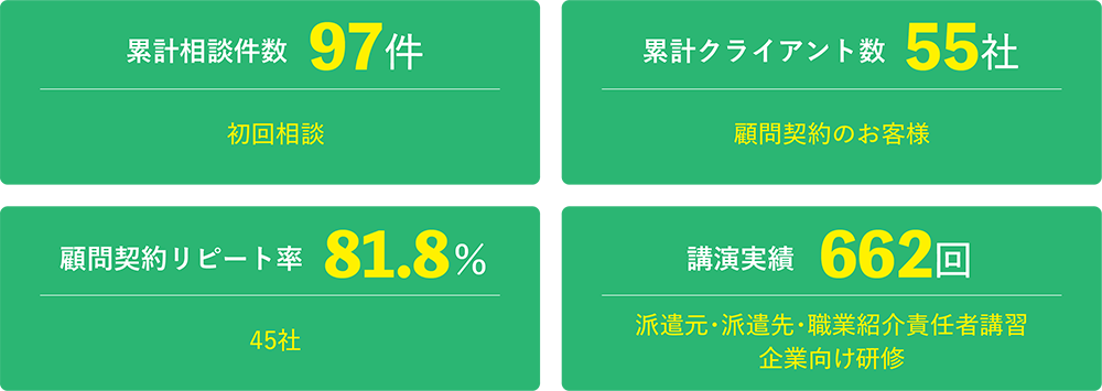 厚労省指定の派遣元・派遣先・職業紹介責任者講習講師として2012年以来継続して務め、600回以上登壇。延べ10,000人以上に最新法改正や実務指導を行ってきた知見で、講習の“その先”の運用までサポート。机上の知識ではない、実践的なアドバイスが可能です。